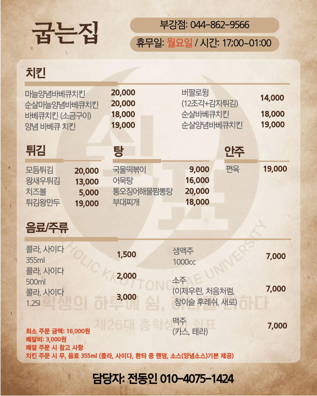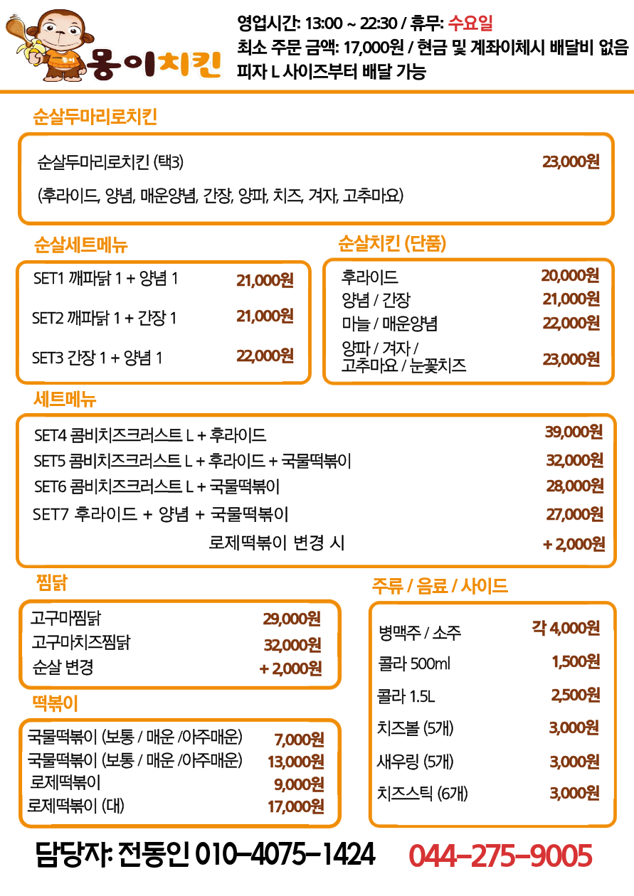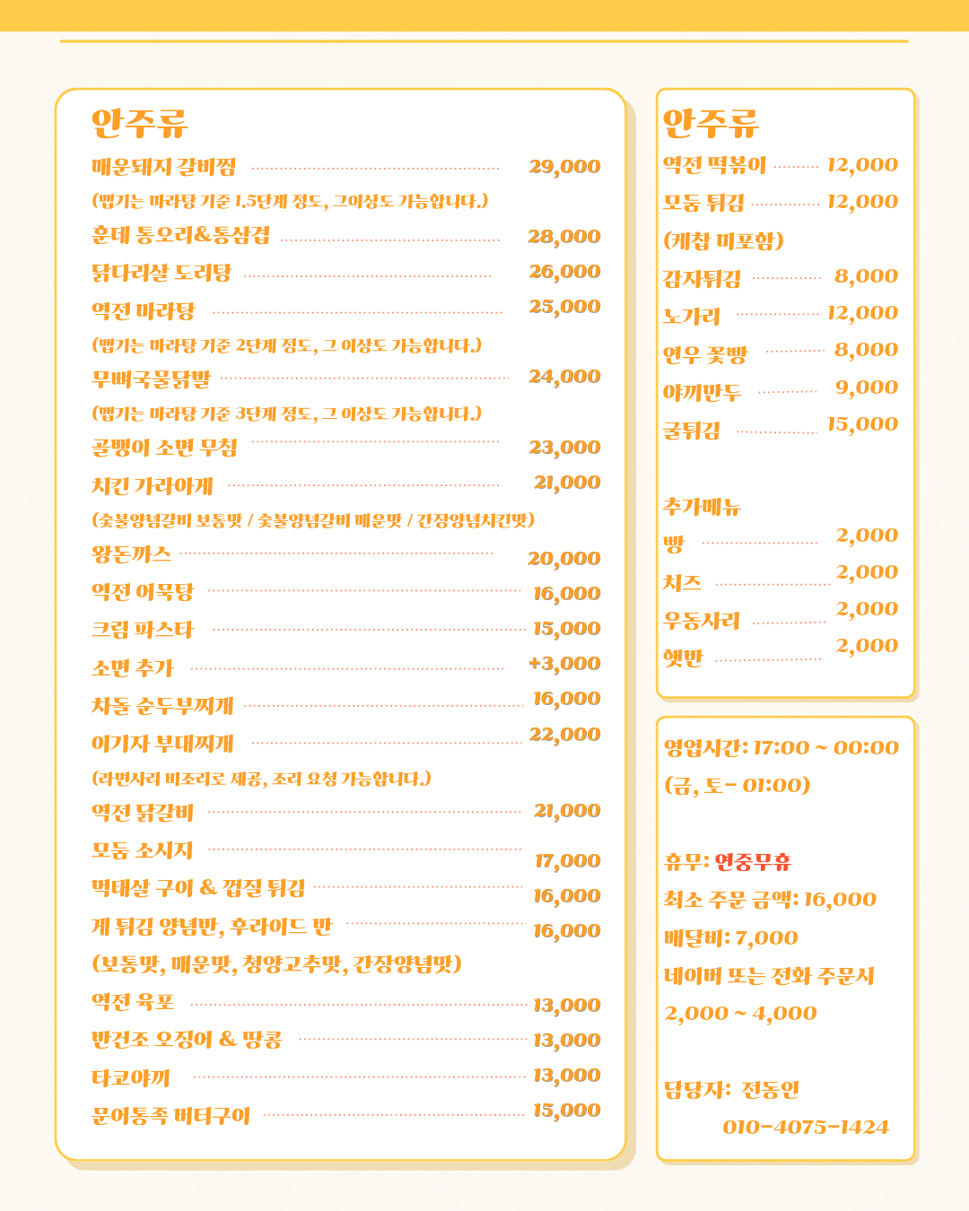 해당 메뉴판의 가격은 전화 주문 기준으로 작성되었음을 알려 드립니다.