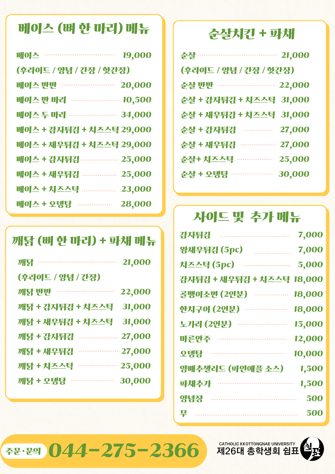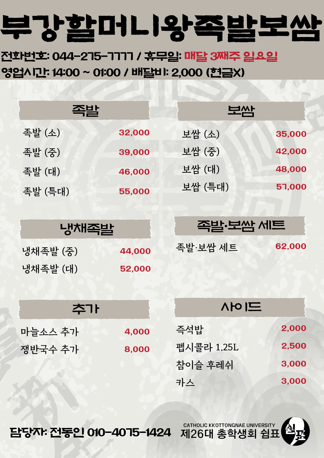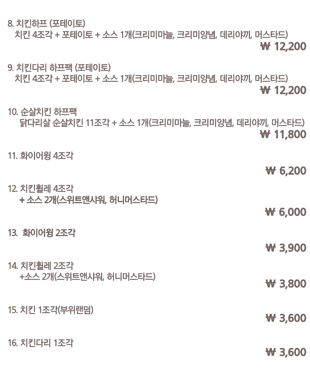 해당 메뉴판의 가격은 전화 주문 기준으로 작성되었음을 알려 드립니다.